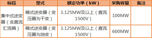 標(biāo)段二:集中式逆變器,預(yù)估采購容量700MW。