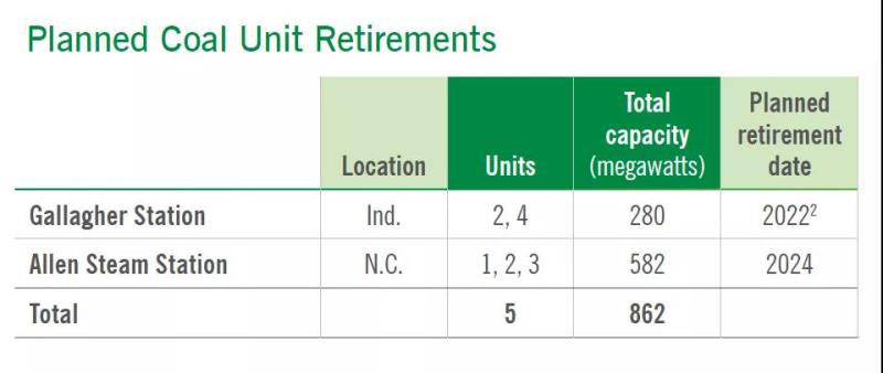 杜克能源計(jì)劃再淘汰的862MW煤電機(jī)組