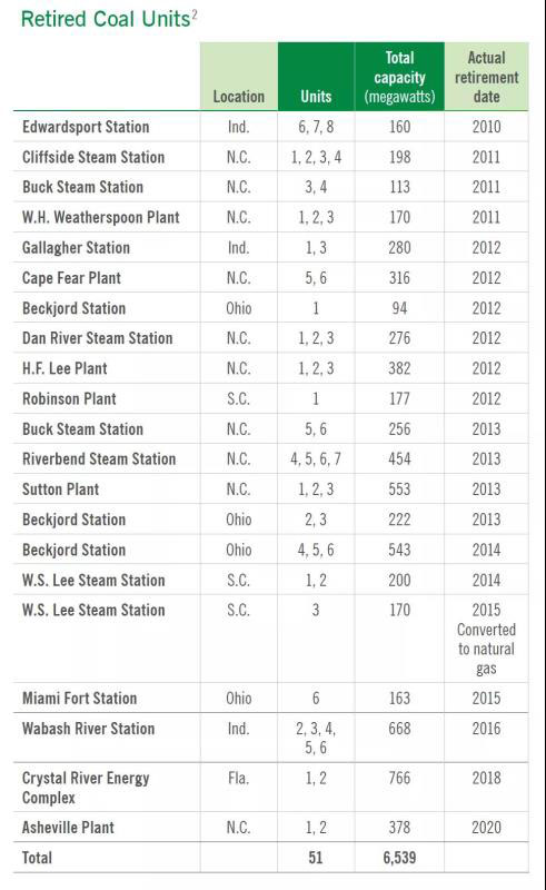杜克能源已經(jīng)淘汰的6539MW煤電廠