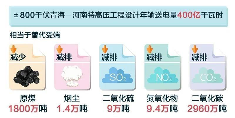 青豫直流工程是在河南落地的第二條特高壓直流輸電工程。該工程額定輸送功率800萬千瓦,相當(dāng)于為河南送來8座100萬千瓦發(fā)電廠。工程投運(yùn)后,每年可向河南輸送清潔電能400億千瓦時,約占河南省年用電量的八分之一。
