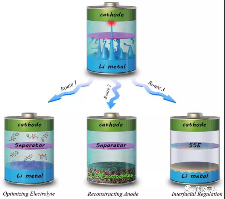 圖4. 在高比能鋰金屬電池中發(fā)展高安全鋰金屬負(fù)極的主要路線示意圖