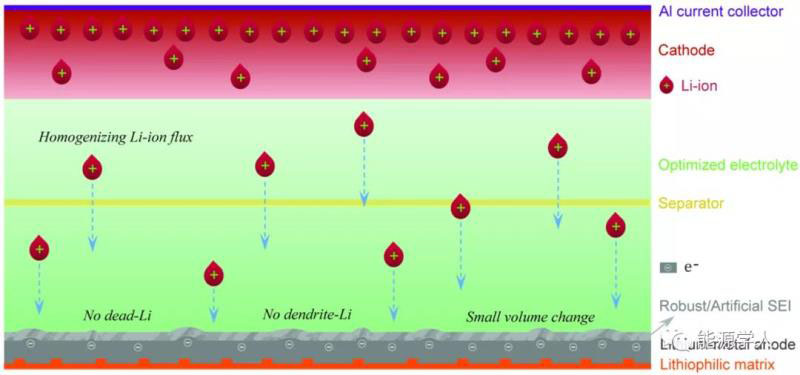 圖2. 一種用于未來高比能鋰金屬電池的沒有鋰枝晶和死鋰的理想高安全鋰金屬負(fù)極示意圖