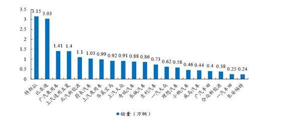 圖2 1-5月國內新能源汽車銷量排名