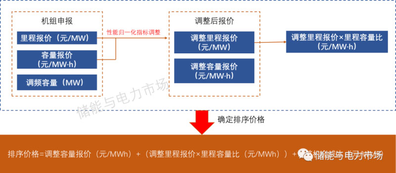 另外,相較于其他區(qū)域,未來浙江AGC調頻輔助服務的市場出清價格確定過程頗為復雜(燒腦),報價過程中,申報容量、容量申報價格、里程申報價格、機組性能、機組的機會成本將共同決定市場出清的里程價格及容量價格。