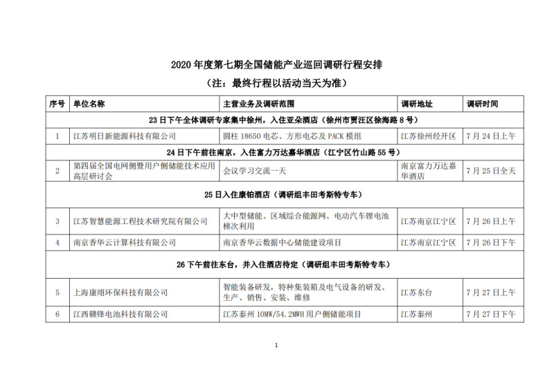 中國儲能網(wǎng)訊:為進一步了解疫情影響下國內(nèi)儲能產(chǎn)業(yè)的復(fù)工復(fù)產(chǎn)情況、企業(yè)當(dāng)前存在的困難、新型技術(shù)路線及市場規(guī)劃、項目建設(shè)進展及投融資現(xiàn)狀、標(biāo)準(zhǔn)建設(shè)等方面實際訴求,并向行業(yè)主管部門提出合理化建議。中國化學(xué)與物理電源行業(yè)協(xié)會儲能應(yīng)用分會決定聯(lián)合中國電工技術(shù)學(xué)會電池專業(yè)委員會、中國儲能網(wǎng)將于2020年7月24日—8月10日組織開展2020年度第七期全國儲能產(chǎn)業(yè)巡回調(diào)研工作,現(xiàn)將有關(guān)調(diào)研行程及相關(guān)注意事項說明如下: