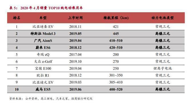 2020 年 4 月純電動乘用車銷量前十的車型中有 40% 搭載高鎳三元,占比較 高,均為中高端長續(xù)航版?;谌矫嬉蛩兀海?)成本:高鎳三元中鈷含量 較低,隨著上游產(chǎn)能提升和技術(shù)進(jìn)步,材料的價格有望進(jìn)一步下降;(2)安 全:通過材料改性、電池結(jié)構(gòu)優(yōu)化等策略,業(yè)內(nèi)已解決中鎳三元的針刺安全性 問題,隨著技術(shù)迭代,高鎳三元的安全劣勢有望得到改善;(3)下游需求: 明星車型 Model 3 長續(xù)航版采用高鎳三元,各車企長續(xù)航版車型為體現(xiàn)性能差 異,最佳的方式是采用高鎳三元電池,預(yù)計(jì)未來兩年高鎳三元仍是動力電池的 發(fā)展方向。