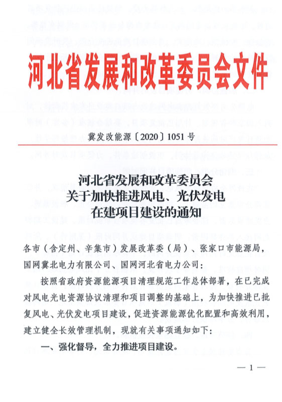 7月17日,河北省發(fā)改委發(fā)布《關(guān)于加快推進(jìn)風(fēng)電、光伏發(fā)電在建項(xiàng)目建設(shè)的通知》。