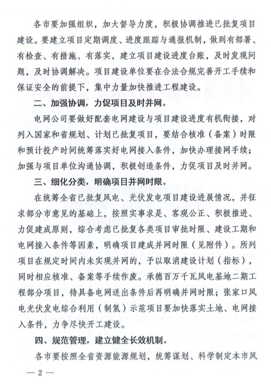 并規(guī)定:今后新核準(zhǔn)或備案項(xiàng)目,兩年內(nèi)未開(kāi)工建設(shè)或無(wú)實(shí)質(zhì)性建設(shè)進(jìn)展的,一律取消項(xiàng)目計(jì)劃,騰出資源和電網(wǎng)消納空間優(yōu)先保障國(guó)家和省重大示范項(xiàng)目。