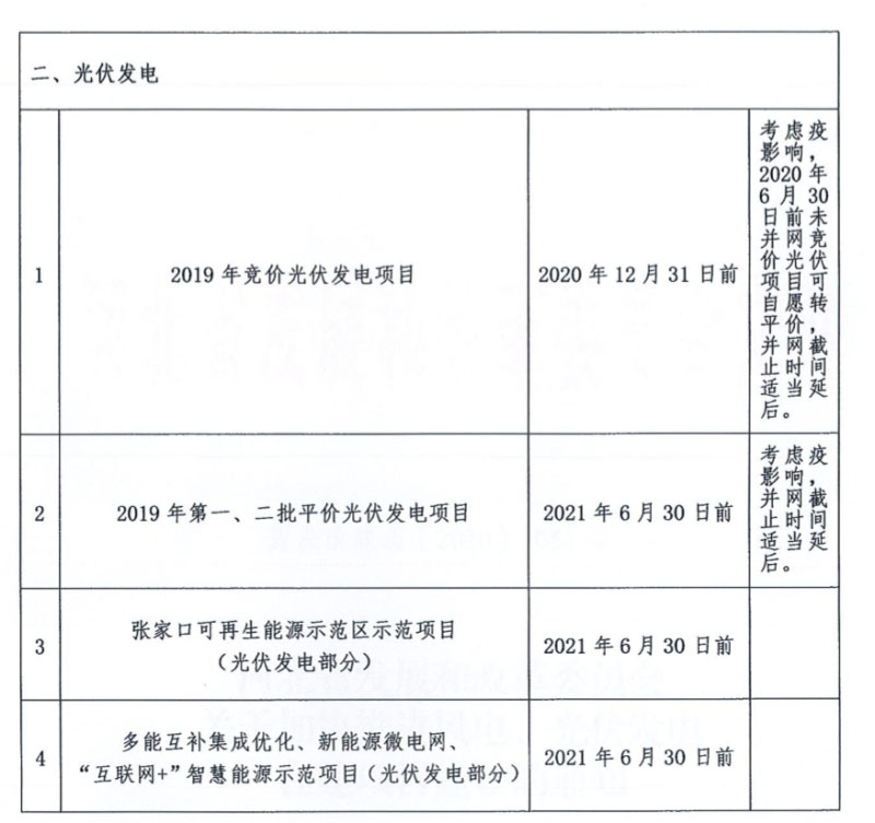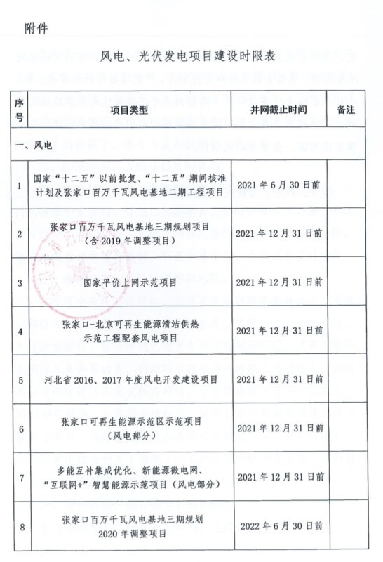 《通知》明確八類風(fēng)電項(xiàng)目、四類光伏項(xiàng)目并網(wǎng)截止時(shí)間。并表示在規(guī)定時(shí)間內(nèi)未完成并網(wǎng)的,予以取消建設(shè)計(jì)劃(指標(biāo))。同時(shí),相應(yīng)核準(zhǔn)、備案等手續(xù)作廢。