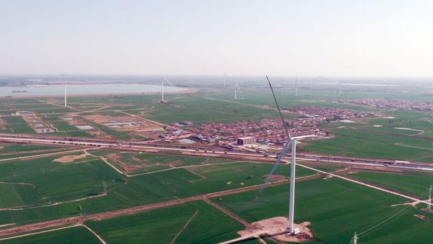 日前,華能德州風(fēng)光儲一體發(fā)電項目中的10萬千瓦風(fēng)電項目25臺機組全部并網(wǎng)發(fā)電。風(fēng)機單機容量為4兆瓦,創(chuàng)國內(nèi)陸上風(fēng)電單機容量之最。