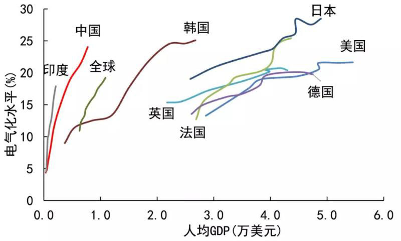 中國電氣化水平國際比較及發(fā)展趨勢研判