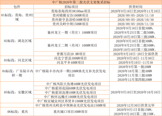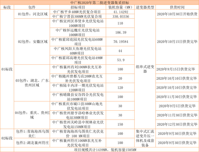 7月15日,中廣核新能源發(fā)布2020年第二批逆變器集采,招標(biāo)容量共計(jì)1.5GW。17日,相繼發(fā)布2020年第二批支架招標(biāo)公告,容量總計(jì)為1.6GW。具體招標(biāo)詳情見下表格: