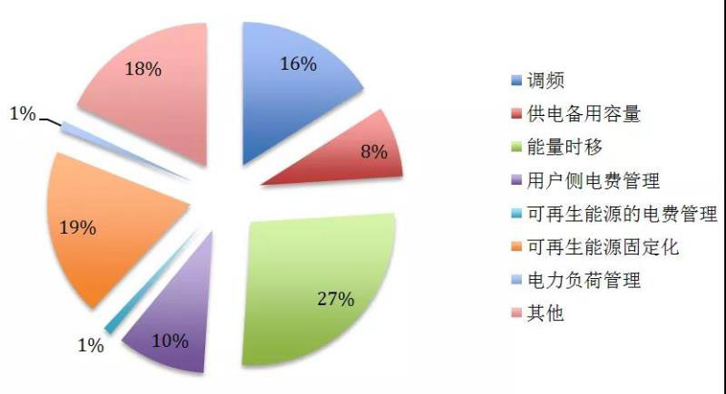 儲能另一個典型應用是能量時移,占儲能項目應用的13%。能量時移就是通過儲能的方式實現(xiàn)用電負荷的削峰填谷,即發(fā)電廠在用電負荷低谷時段對電池充電,在用電負荷高峰時段將存儲的電量釋放。此外,將可再生能源的棄風棄光電量存儲后再移至其他時段進行并網也是能量時移。