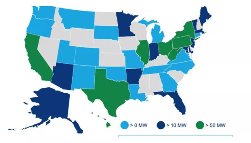 圖2 美國各州儲能部署分布情況