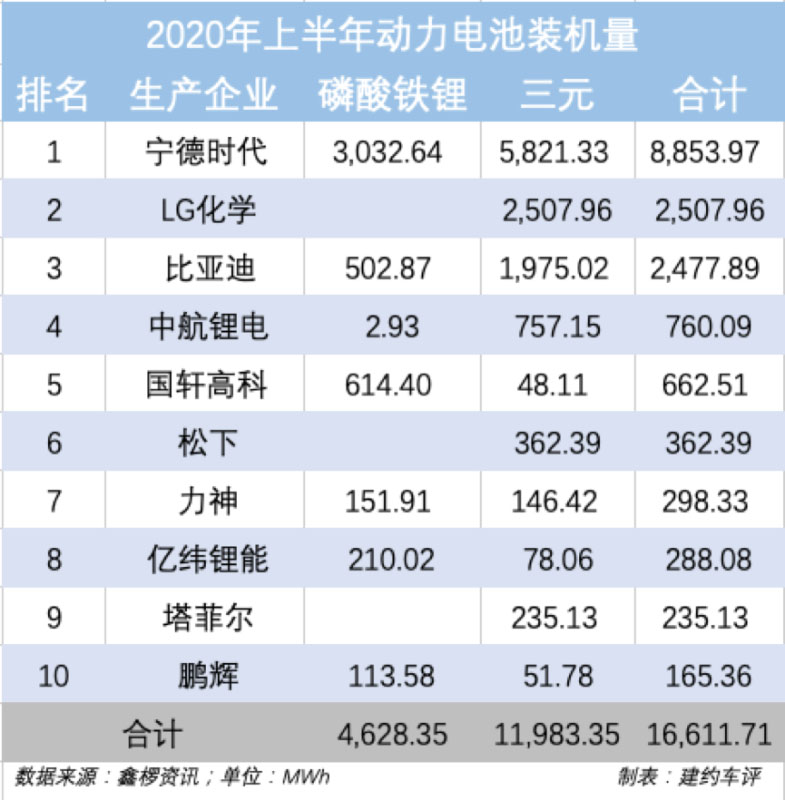 根據(jù)鑫欏資訊的數(shù)據(jù),2020年上半年動(dòng)力電池裝機(jī)量為17.43 GWh,其中前10廠商的市場(chǎng)份額達(dá)到了驚人的95.3%。
