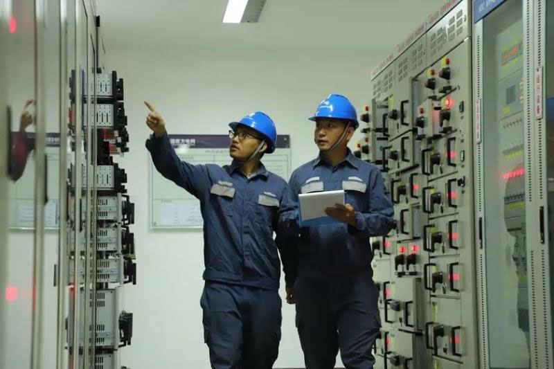 火星探測器發(fā)射保供電期間,南網(wǎng)超高壓公司廣州局??诜志忠淮伟嗳藛T在500千伏福山變電站交直流配電室巡視檢查設(shè)備運行情況。