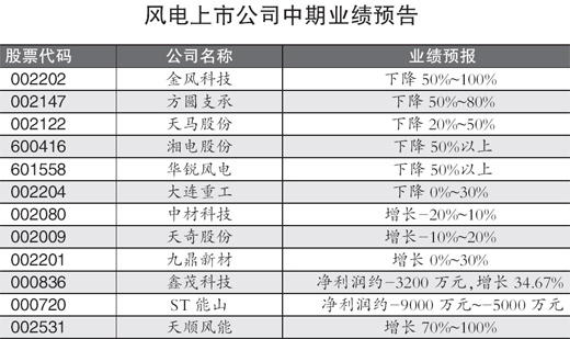 從風(fēng)電上市公司公布的上半年業(yè)績預(yù)告來看,經(jīng)過5年高速發(fā)展的風(fēng)電行業(yè),正在經(jīng)歷一個(gè)明顯的減速期。