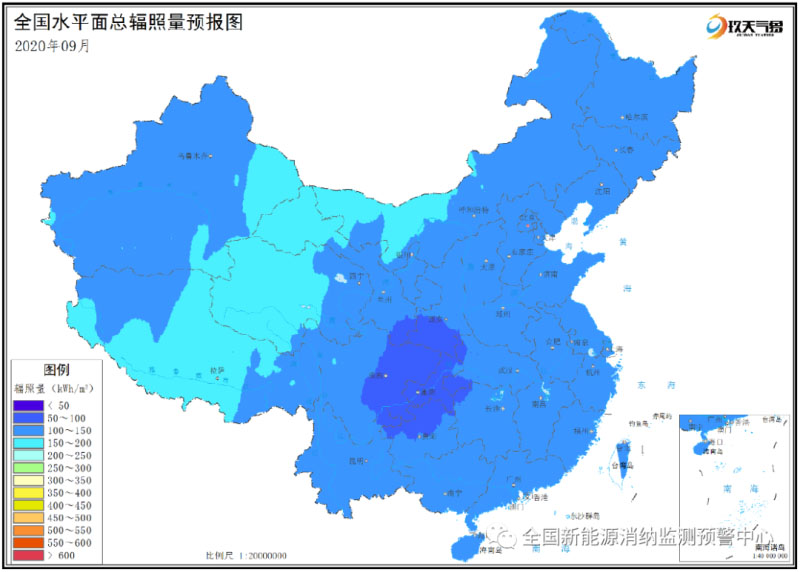 附圖6 全國2020年9月水平面總輻照量預(yù)報圖