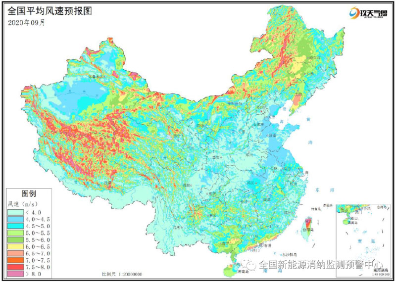 附圖5 全國2020年9月平均風(fēng)速分布預(yù)報圖