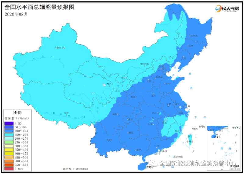 附圖4 全國2020年8月水平面總輻照量預(yù)報圖