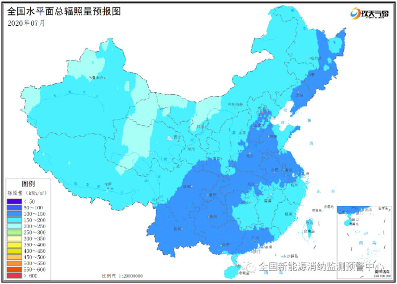 附圖2 全國2020年7月水平面總輻照量預(yù)報圖