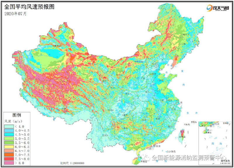附圖1 全國2020年7月平均風(fēng)速分布預(yù)報圖
