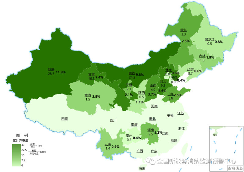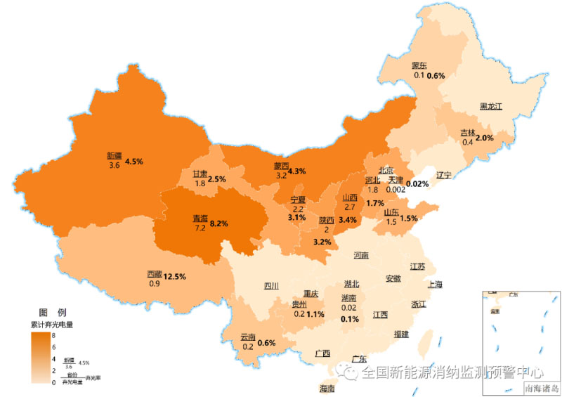 截至6月底各地區(qū)累計棄光電量(億千瓦時)及棄光率