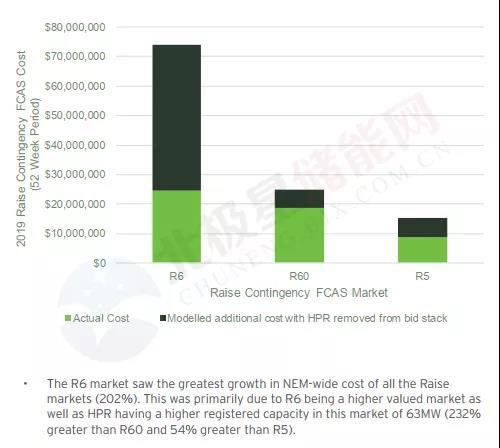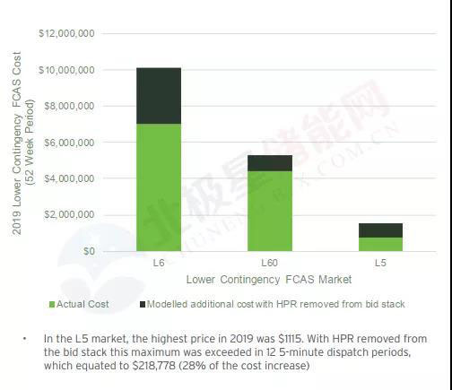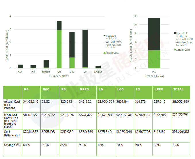 2. 儲(chǔ)能項(xiàng)目將應(yīng)急調(diào)頻輔助服務(wù)的總成本降低了約8000萬(wàn)美元,常規(guī)調(diào)頻輔助服務(wù)市場(chǎng)的總成本降低了約3600萬(wàn)美元,澳大利亞國(guó)家電力市場(chǎng)的總成本降低約1.16億美元;