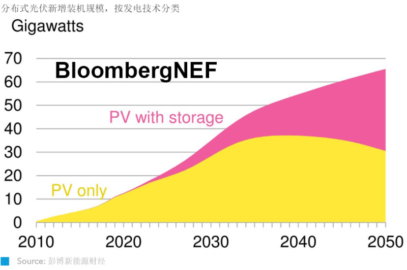 目前至2050年的分布式儲(chǔ)能新增規(guī)模預(yù)期