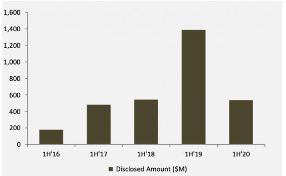 如今的市場并購活動仍在繼續(xù),今年上半年總共完成了8筆交易,而2019年上半年只有6筆交易,不過今年上半年的并購交易并沒有披露財(cái)務(wù)細(xì)節(jié)。