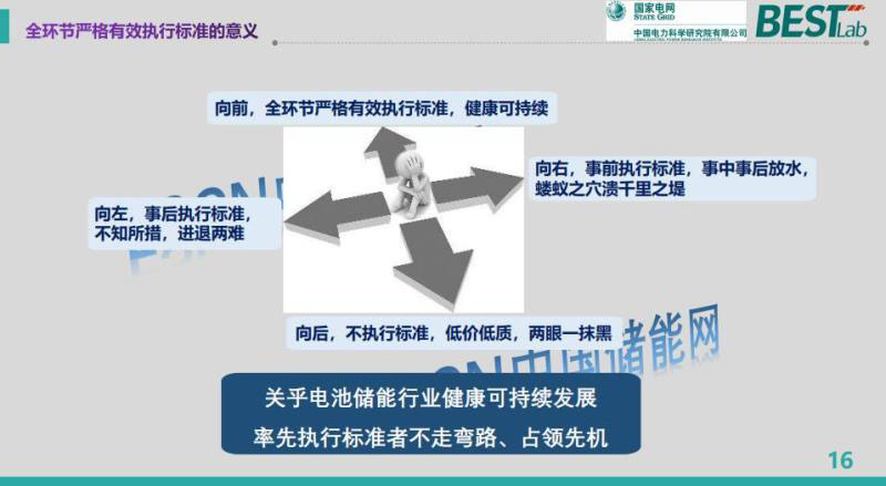 在國內(nèi),之前的投運的電站,實際上在標準檢測沒跟上的情況下,也存在這個問題。如果說在今后,現(xiàn)在標準已經(jīng)建立起來,如果還不嚴格執(zhí)行的話,就存在一個問題。這個就有點像做病毒檢測,不檢測就沒有確診。現(xiàn)在我們這個電池也是,不做檢測就看不到這些潛在的安全問題,這就變成一個很大的問題?如果不經(jīng)過標準檢驗,整個儲能系統(tǒng)、儲能電站總體的性能是不確定的,包括電池的關(guān)鍵控制參數(shù)是不明確的,系統(tǒng)的容量、壽命、安全都是不確定的,因為你沒有經(jīng)過標準一層一層的檢驗,無法從理論上去推導(dǎo)它的質(zhì)量和安全。