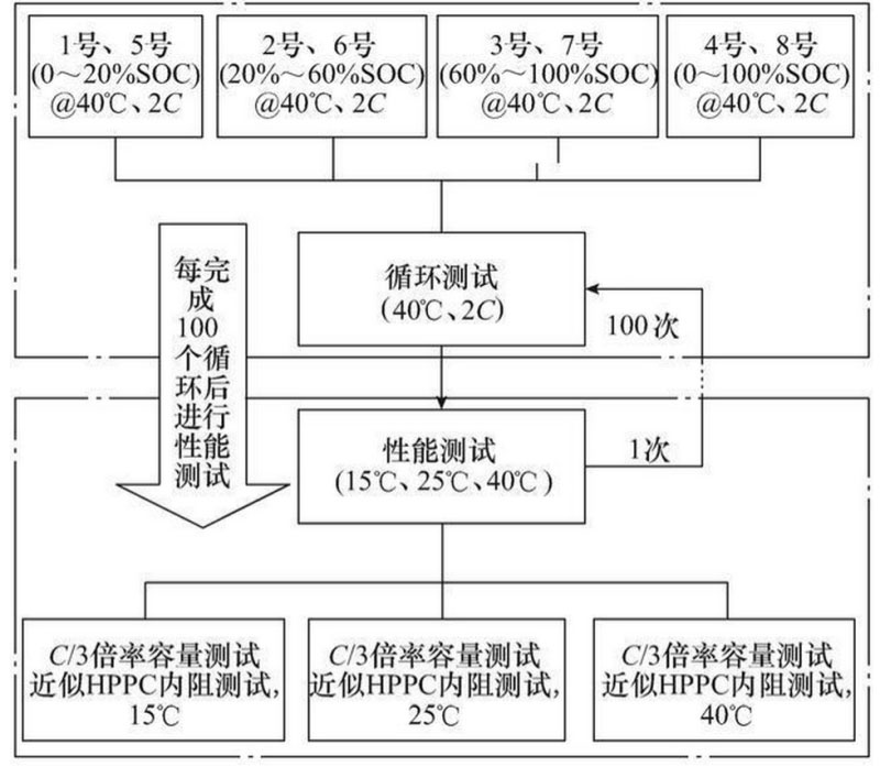 鋰離子電池在不同容量區(qū)間和不同工況應(yīng)力下使用衰退性能不同。北京交通大學(xué)國(guó)家能源主動(dòng)配電網(wǎng)技術(shù)研發(fā)中心、北京電動(dòng)車輛協(xié)同創(chuàng)新中心、北京新能源汽車股份有限公司的研究人員孫丙香、劉佳、韓智強(qiáng)、任鵬博、張維戈,在2020年第9期《電工技術(shù)學(xué)報(bào)》上撰文,以復(fù)合材料鋰離子電池為研究對(duì)象,基于電化學(xué)相變機(jī)理對(duì)循環(huán)區(qū)間進(jìn)行劃分,在分區(qū)間和全區(qū)間分別完成了累計(jì)吞吐量600次的循環(huán)測(cè)試。