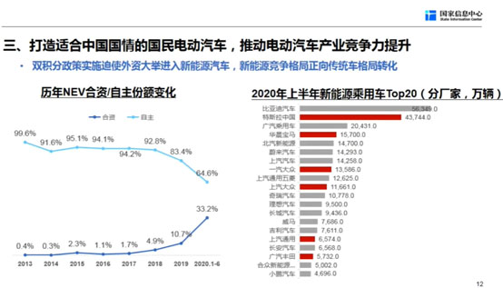 打造適合中國(guó)國(guó)情的電動(dòng)汽車,是提升電動(dòng)汽車競(jìng)爭(zhēng)力的重要抓手。“雙積分”政策實(shí)施以后,外資企業(yè)、傳統(tǒng)的合資企業(yè)開始大舉進(jìn)入新能源汽車,這帶來一個(gè)很重要的結(jié)果,也是過去發(fā)展新能源汽車所不愿意看到的,就是新能源汽車的競(jìng)爭(zhēng)格局正在向傳統(tǒng)車的競(jìng)爭(zhēng)格局轉(zhuǎn)變。自主新能源汽車的市場(chǎng)份額這兩年急劇下滑,而合資的市場(chǎng)份額,今年上半年已經(jīng)提升到了30%幾。前20名的廠家當(dāng)中,除了特斯拉,還有寶馬、大眾,包括通用、豐田。如果沒有一個(gè)新的導(dǎo)向和新的發(fā)展模式,我想未來新能源汽車的競(jìng)爭(zhēng)格局跟傳統(tǒng)汽車沒有太大的差別。