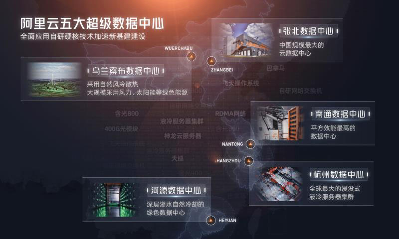 阿里云方面介紹,這五個(gè)建成的超級(jí)數(shù)據(jù)中心全面應(yīng)用了阿里巴巴自研核心技術(shù),包括自研的神龍?jiān)品?wù)器。
