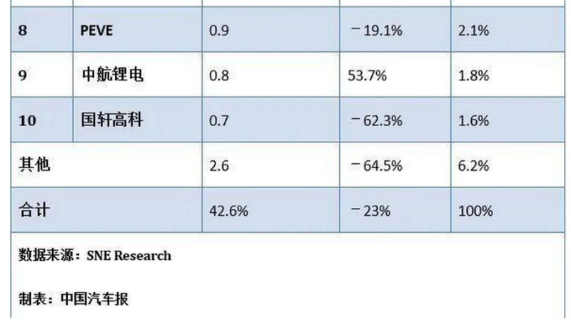 數(shù)據(jù)顯示,今年上半年,全球排行前十的電池廠商中,LG化學(xué)、三星SDI、SK Innovation和中航鋰電的電池裝機(jī)量均實(shí)現(xiàn)了同比增長,其他廠商則出現(xiàn)了不同幅度的下滑。