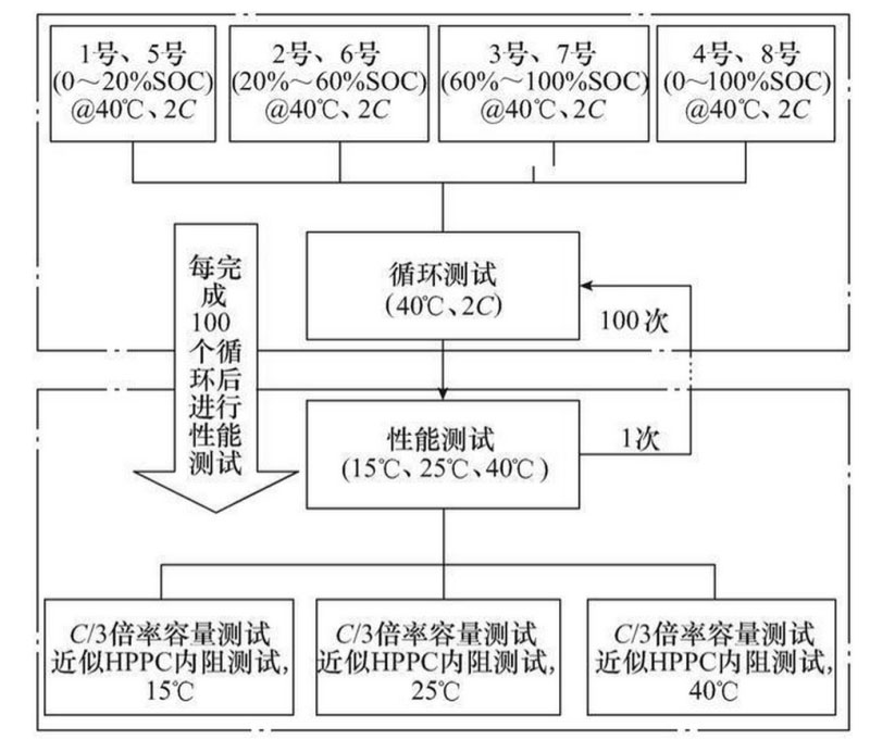 鋰離子電池在不同容量區(qū)間和不同工況應(yīng)力下使用衰退性能不同。北京交通大學(xué)國(guó)家能源主動(dòng)配電網(wǎng)技術(shù)研發(fā)中心、北京電動(dòng)車輛協(xié)同創(chuàng)新中心、北京新能源汽車股份有限公司的研究人員孫丙香、劉佳、韓智強(qiáng)、任鵬博、張維戈,在2020年第9期《電工技術(shù)學(xué)報(bào)》上撰文,以復(fù)合材料鋰離子電池為研究對(duì)象,基于電化學(xué)相變機(jī)理對(duì)循環(huán)區(qū)間進(jìn)行劃分,在分區(qū)間和全區(qū)間分別完成了累計(jì)吞吐量600次的循環(huán)測(cè)試。