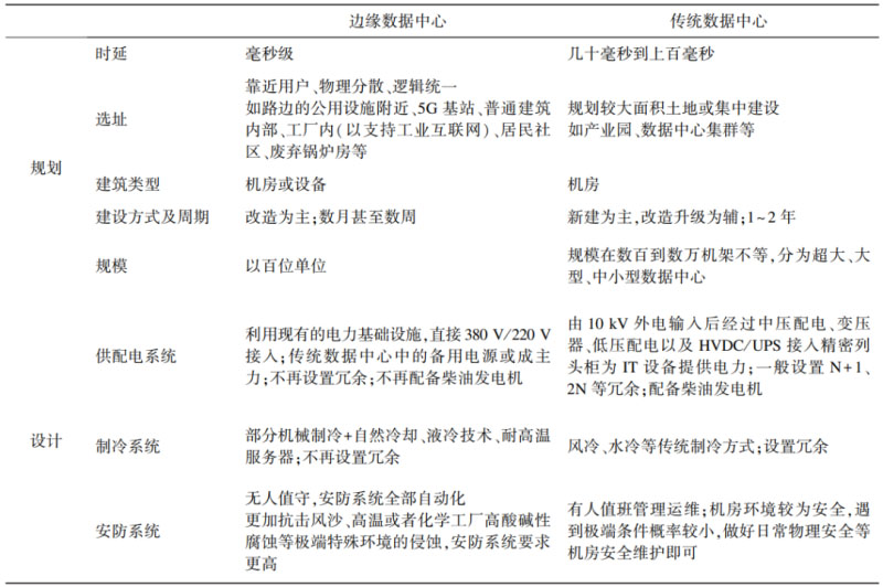 表2 邊緣數(shù)據(jù)中心與傳統(tǒng)數(shù)據(jù)中心在規(guī)劃與設(shè)計(jì)方面的對比