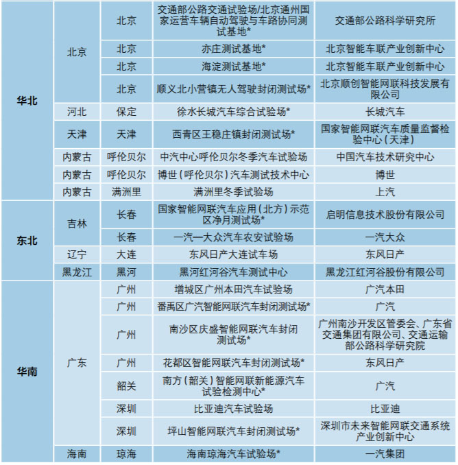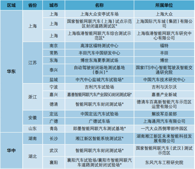 (備注:*為智能網(wǎng)聯(lián)汽車封閉測試場)