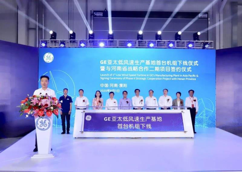 GE亞太低風(fēng)速生產(chǎn)基地首臺機(jī)組下線儀式暨與河南省戰(zhàn)略合作二期項(xiàng)目簽約儀式