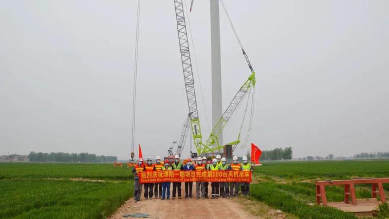GE完成華能濮陽風(fēng)電場的第100臺風(fēng)電機(jī)組吊裝工作