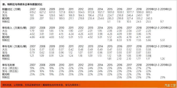 根據(jù)天風(fēng)證券的研究,雖然特斯拉全球銷量僅相當(dāng)于傳統(tǒng)豪華品牌奔馳和寶馬的1/10左右,但選配后其單車平均價格在5.5萬美元左右,已經(jīng)超過了奔馳、寶馬4-5萬美元的水平。