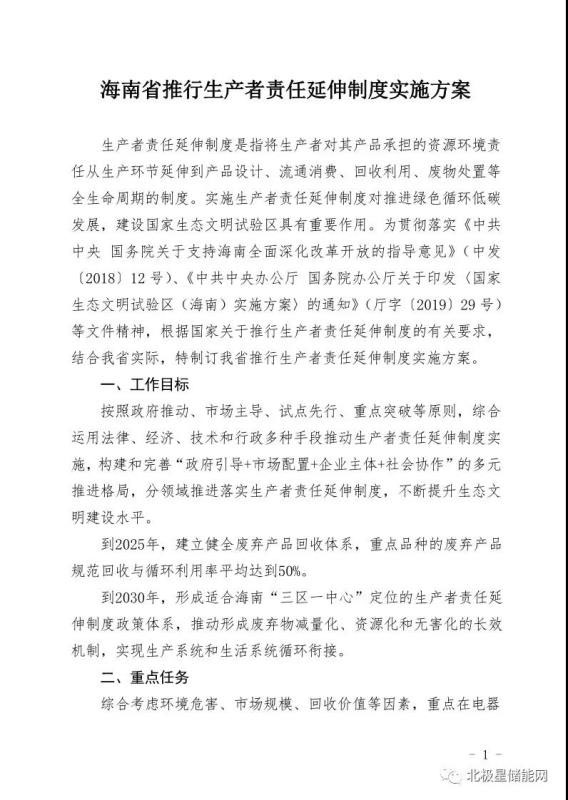 8月12日海南省發(fā)布了《海南省推行生產(chǎn)者責(zé)任延伸制度實(shí)施方案》,方案指出到2025年,建立健全廢棄產(chǎn)品回收體系,重點(diǎn)品種的廢棄產(chǎn)品規(guī)范回收與循環(huán)利用率平均達(dá)到50%。