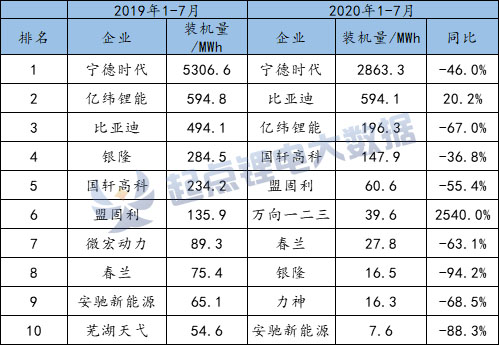 從排名來看,前三企業(yè)仍然為寧德時(shí)代、比亞迪和億緯鋰能,國軒高科取代銀隆成為第4。微宏和蕪湖天弋掉出前十,萬向一二三和力神進(jìn)入top10。