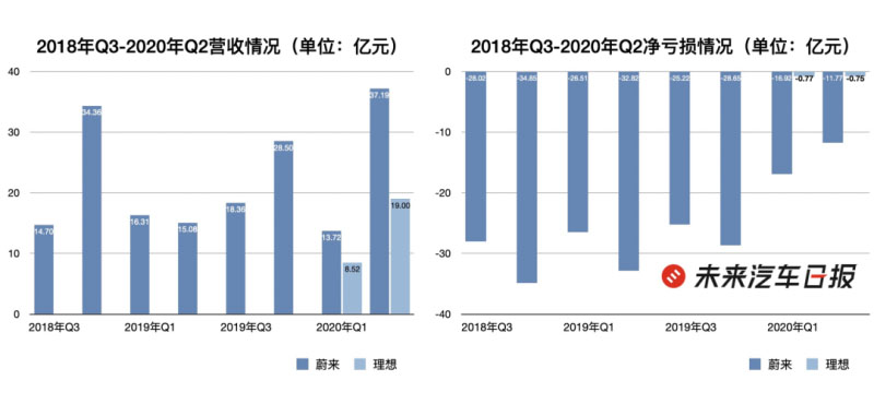 蔚來(lái)及理想汽車營(yíng)收&凈虧損情況對(duì)比 來(lái)源:財(cái)報(bào)、招股書 制圖:未來(lái)汽車日?qǐng)?bào)