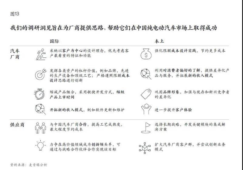 對(duì)于供應(yīng)商而言,合作關(guān)系至關(guān)重要。非中國(guó)供應(yīng)商可利用成熟的工程技術(shù),成為創(chuàng)新領(lǐng)頭羊。而中國(guó)供應(yīng)商或許可通過(guò)協(xié)助非中國(guó)汽車廠商在市場(chǎng)立足來(lái)拓寬自己的客戶群(圖13)。