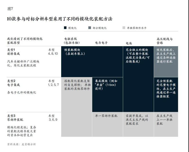 此外,我們觀察到這些汽車廠商均采用一種分組式設(shè)計(jì)方式,聚焦于現(xiàn)有概念與制造技術(shù),并使用現(xiàn)成組件。這些做法有助于減少資本支出并加速產(chǎn)業(yè)化(圖6)。