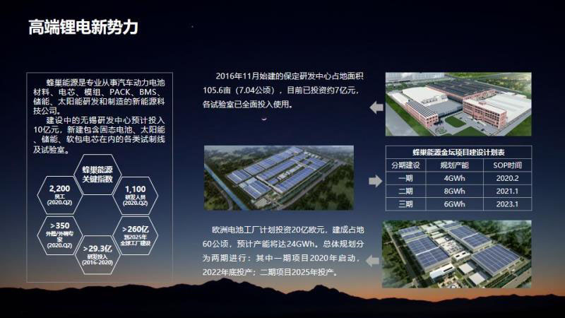 蜂巢能源的前身是長城汽車動力電池事業(yè)部,自2012年起開展電芯的預(yù)研工作,2018年2月獨立為蜂巢能源。公司總部位于江蘇常州。是一家專業(yè)從事汽車動力電池材料、電芯、模組、PACK、BMS、儲能、太陽能研發(fā)和制造的新能源高科技公司。