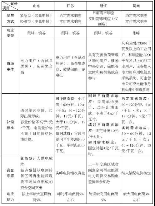 需求響應(yīng)相關(guān)工作和電力市場建設(shè)均歸屬省發(fā)改、經(jīng)信和能源局等相關(guān)部門,但是具體到交易組織、市場運(yùn)營與交易制度并不一致。