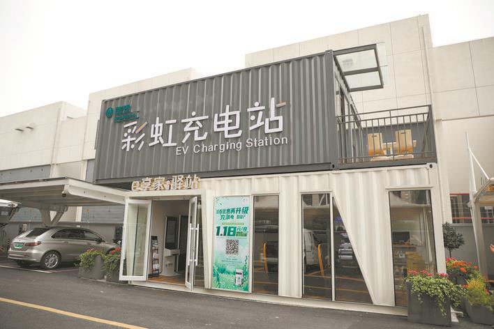 “充電站配套設施都是‘綠色產(chǎn)品’,站內(nèi)可以充電、休息和洗車,服務方便、快捷?!表n欣對彩虹充電站一條龍服務很滿意。