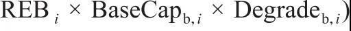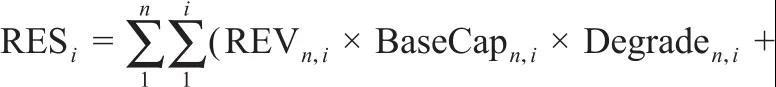 式中,n為車型種類;REVn,i為n車型第i年因車輛退役而退役的電池?cái)?shù)量;BaseCapn,i為n車型第i年退役車輛電池標(biāo)稱容量;Degraden,i為n車型第i年退役車輛電池衰減系數(shù);REBi為第i年因電池老化而退役電池?cái)?shù)量;BaseCapb,i為b類電池第i年退役電池標(biāo)稱容量;Degradeb,i為b類電池第i年退役電池衰減系數(shù)。